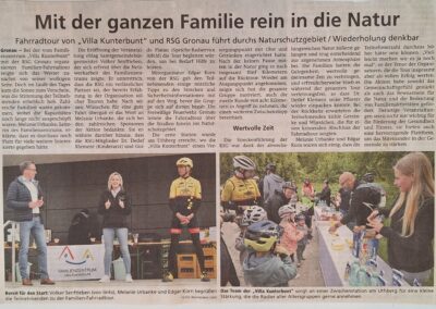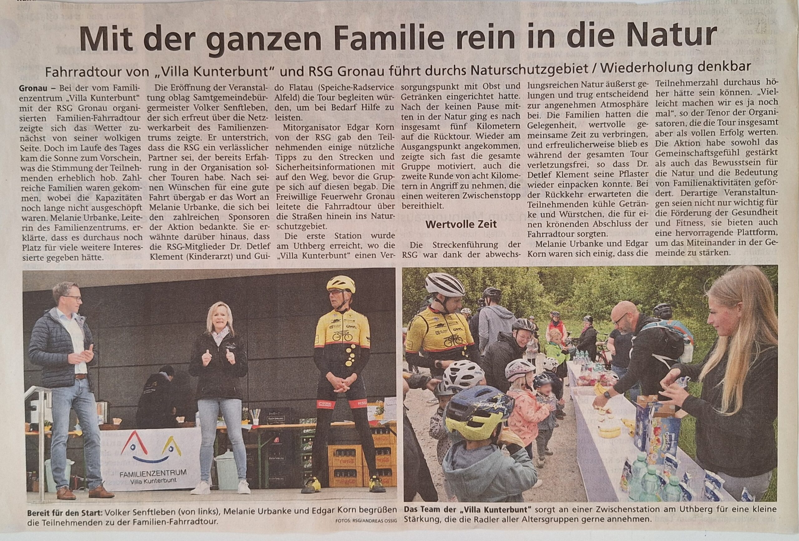 Weiterhin steht das Familienzentrum für Familienzeit. Warum nicht eine familienfreundliche Radtour veranstalten? Schnell waren Bündnispartner gefunden: der TSV Gronau mit der RSG, Kinderart Dr. Klement und dem Lionsclub als Förderer.